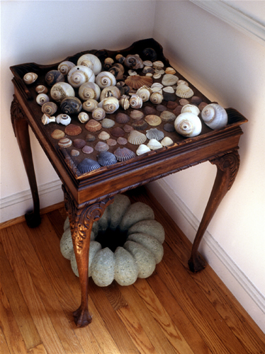 Table, shells, concrete, pigment